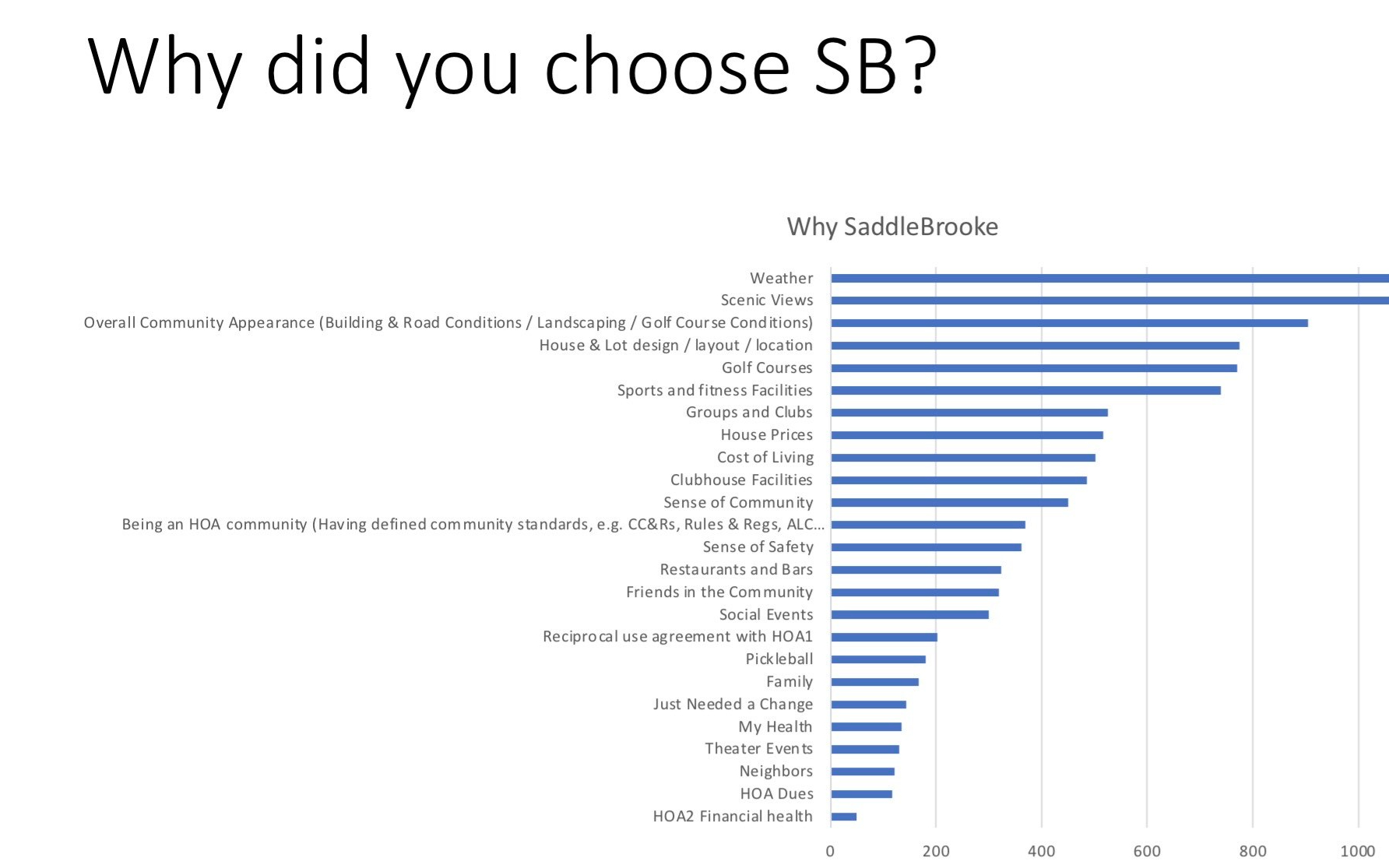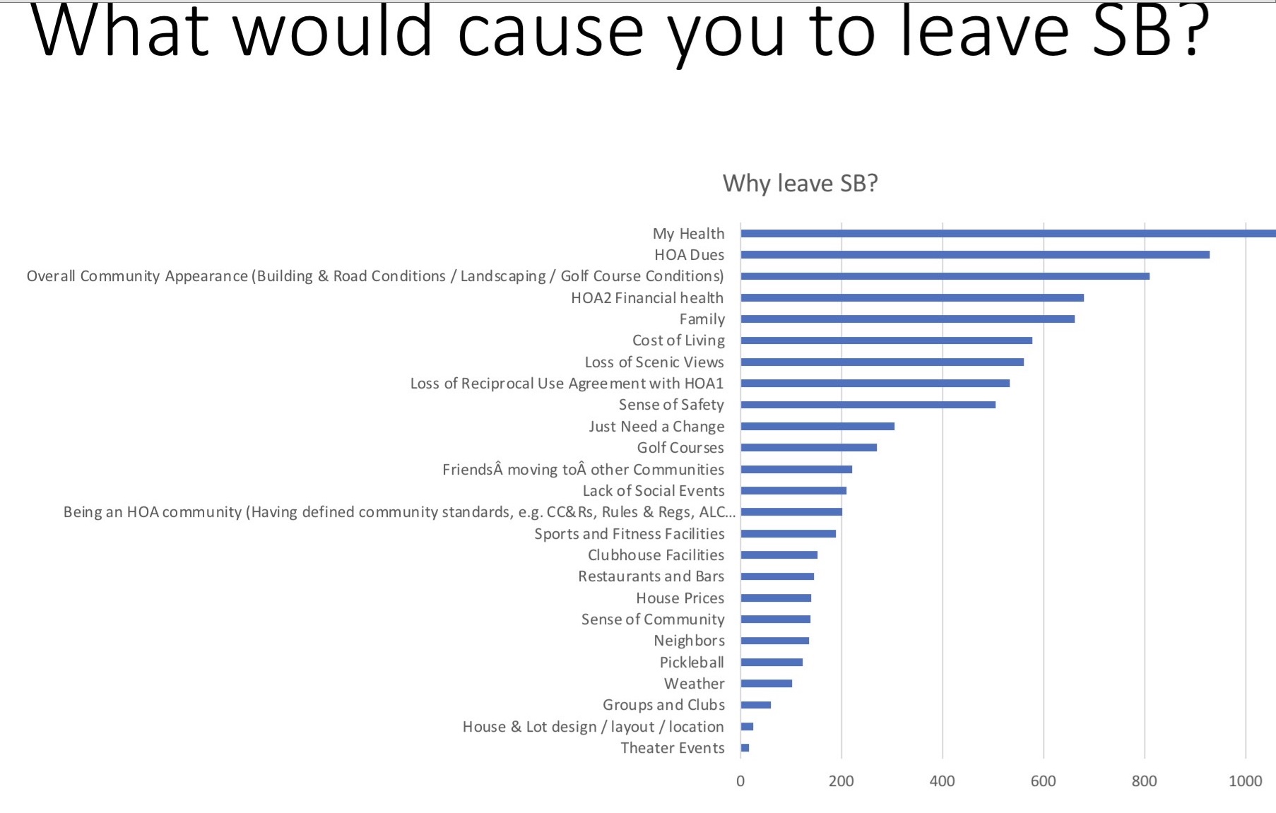 They also asked what would be your reason to leave Saddlebrooke 2. The top 5 reasons were: